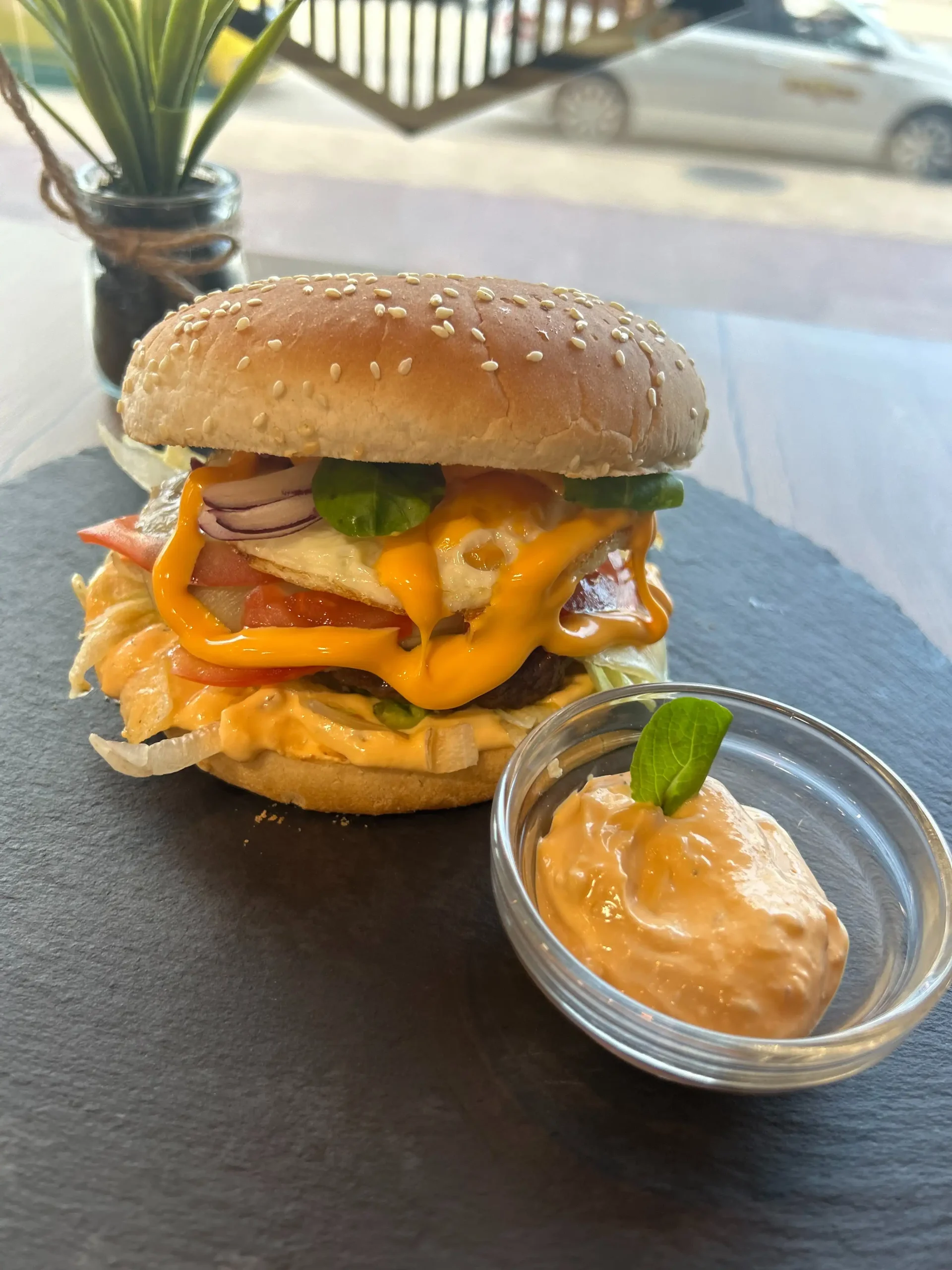 Két kézre lesz szüksége, hogy megfogja a pirított zsemlét. Friss, lédús hamburgereinket , sült krumplival és remek ízzel tálaljuk.